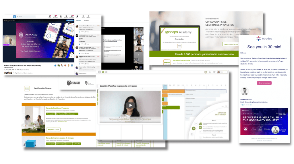 These online courses seamlessly integrate into our CRM or our own platform, allowing users to complete lessons at their own pace. Additionally, we organize live events to delve into specific areas and share valuable insights from other partners.