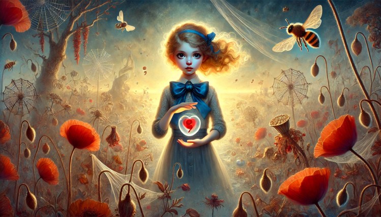 7th Feb 2024 – A proud little girl, enamoured with all she owns, ventures into an unfamiliar world where she encounters unique characters like a semicolon and a heart-shaped droplet. Together, they navigate dark and dangerous terrain to protect a dazzling ribbon of deep, intense blue.